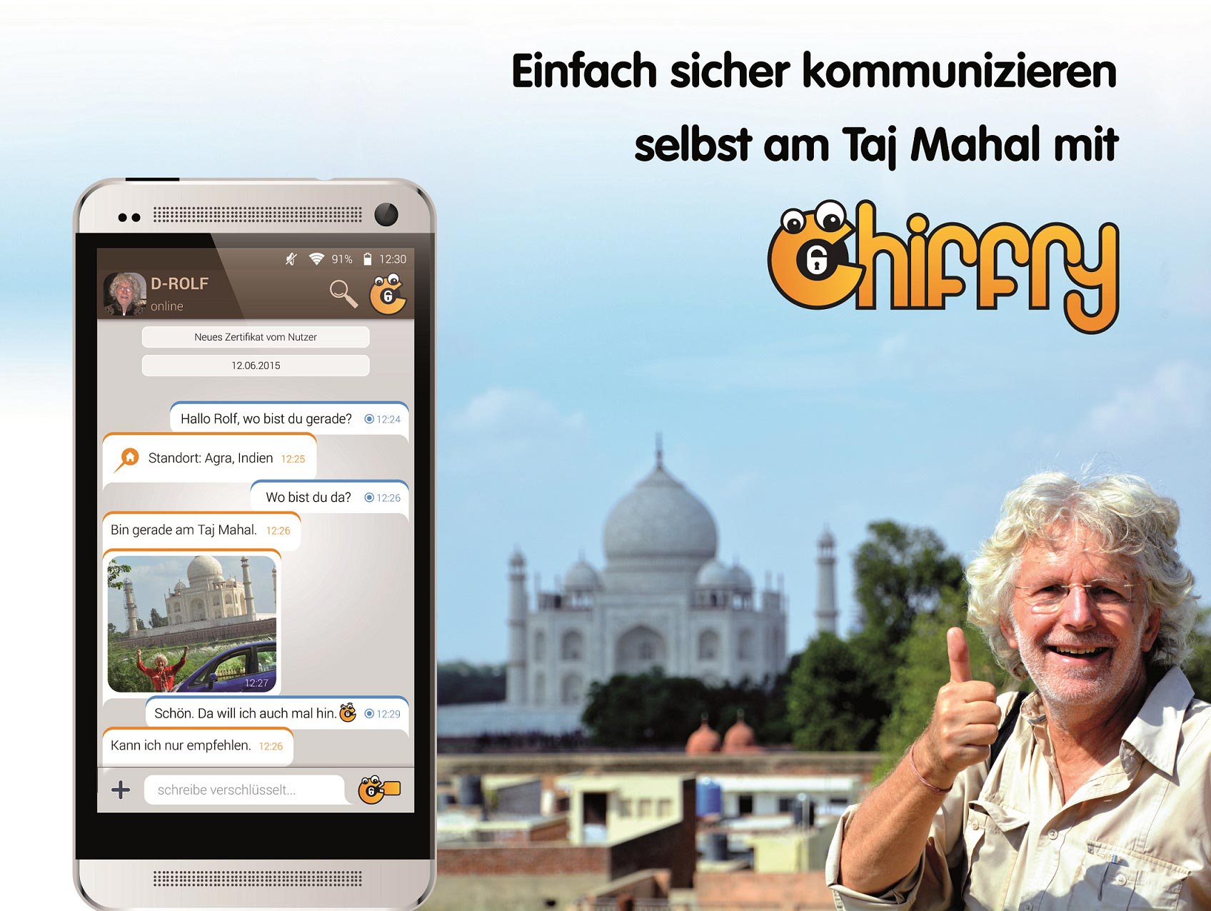 „Dank Chiffry konnte ich mich überall auf meinen Reisen in WLAN-Netze von Hotels oder Flughäfen einwählen, abhörsicher telefonieren und so die Roaminggebühren sparen. Toll finde ich auch, dass ich Videos, Standorte oder abenteuerliche Bilder mit Freunden weltweit teilen kann – das Ganze natürlich immer verschlüsselt und sicher.“ so D-ROLF. Der Aktionskünstler konnte sich selbst in den Krisengebieten am Hindukush auf die Chiffry-App verlassen und ist gern on Tour mir der IT-Security made in Germany.